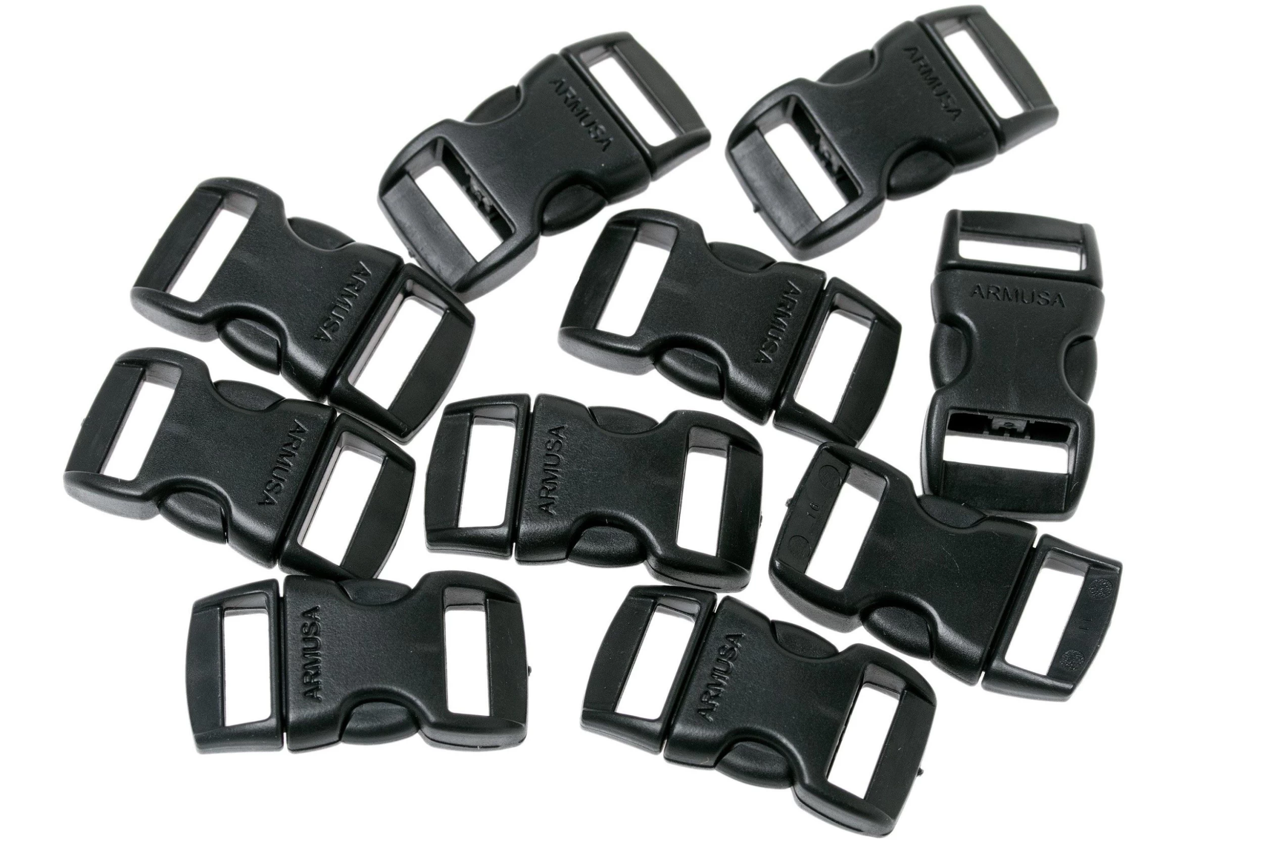 The Atwoord Rope MFG arc buckle is a set of ten buckles in one package. Perfect for everyone who loves to make paracord bracelets or lanyards. The unique aspect of these buckles is that the clasp is bent. Great when you use the buckle for a pracord bracelet, because the whole fits nicely around your wrist. In addition, you don’t get caught behind surfaces and scratch the buckle because nothing sticks out.