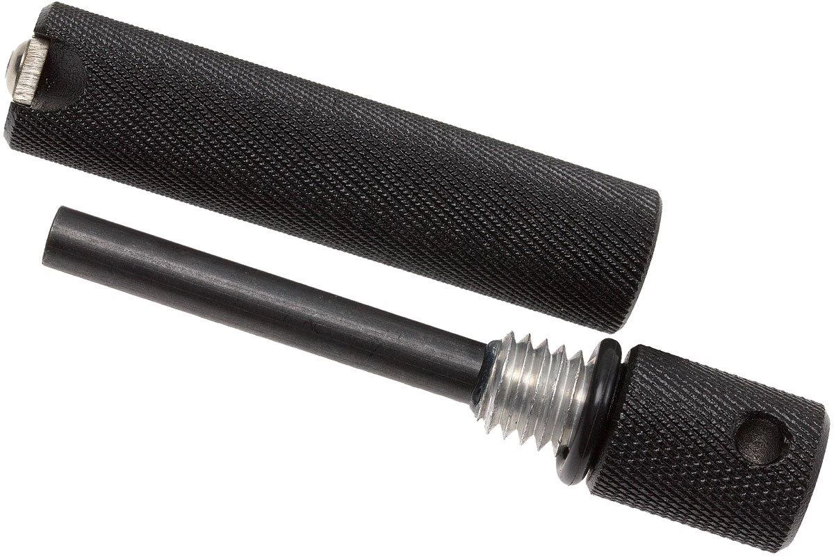 The Aurora Fire Starter 440CB black is an indispensable survival tool. It is unique because of its top-quality aluminium casing. It protects the striking surface. As such you can use the Fire Starter in the most extreme circumstances. The stainless 440C steel on top of the casing is great. As such you will have everything you need to produce sparks.