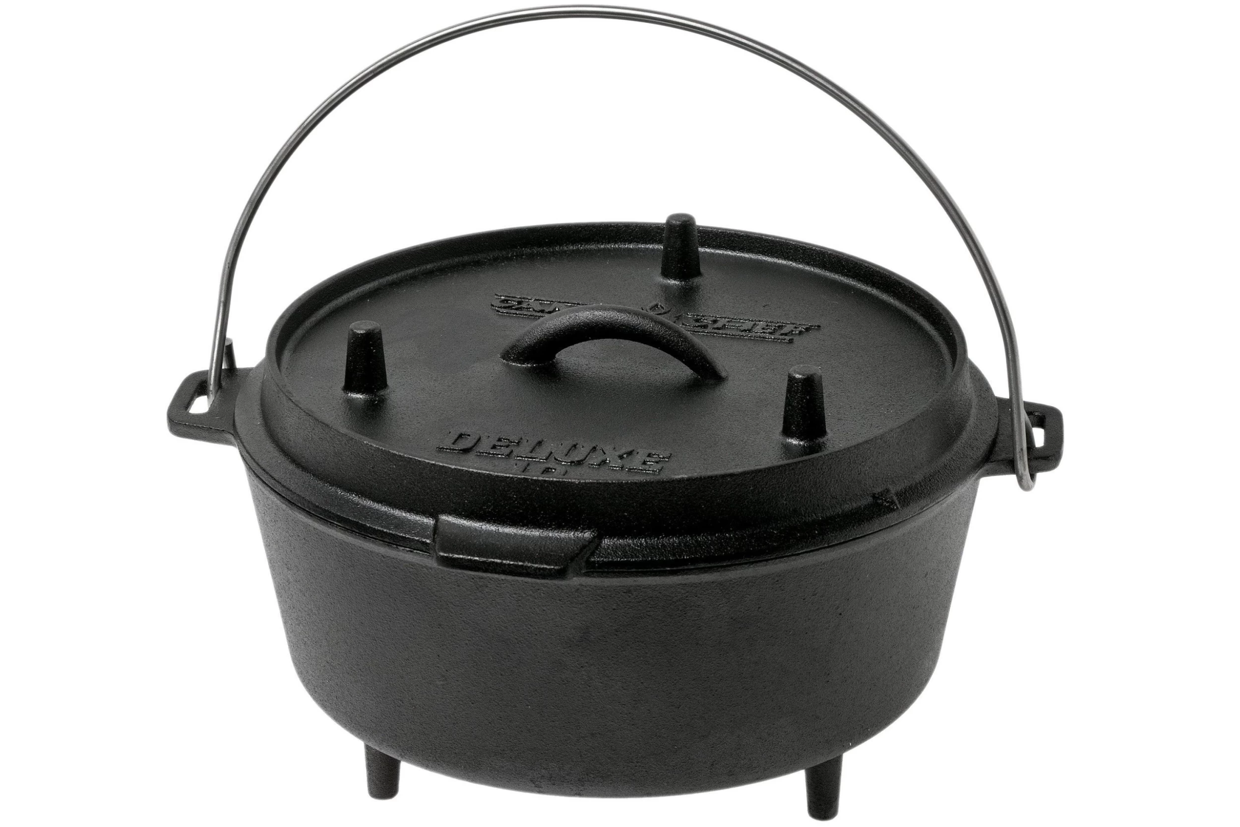 With this Camp Chef 10″ Deluxe Dutch Oven you are even more versatile as you cook on your campfire, in the oven, or simply on your stove. Because of the wonderful qualities of cast-iron the heat is evenly distributed and retained. The Camp Chef 10″ Deluxe Dutch Oven is enhanced with three feet to make it stable and sturdy. The pan comes with lid and lid lifter.