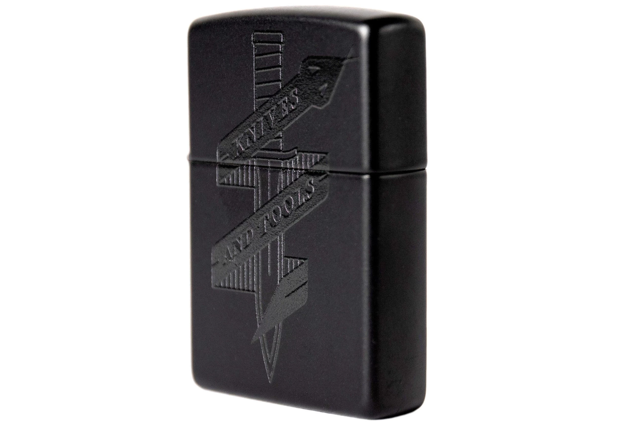 This Knivesandtools Zippo lighter is the classic Zippo lighter, with a cool Knivesandtools design! We think they turned out pretty great. Zippo lighters have been around ever since 1932. The American company has virtually become a synonym for this type of lighter. Everyone knows them! The function of a wick hanging in a reservoir of lighter fluid is characteristic for this lighter. By rotating the wheel alongside a flint, the sparks will hit the wick, causing it to light up. A wind catcher is fitted around the wick. Thanks to this, the Zippo has been wind-resistant for dozens of years, even since before the advent of storm lighters. Zippos have always remained popular among enthusiasts, collectors and survivalists. This is because the simple mechanism of a Zippo is much easier to troubleshoot in the field than a modern lighter.