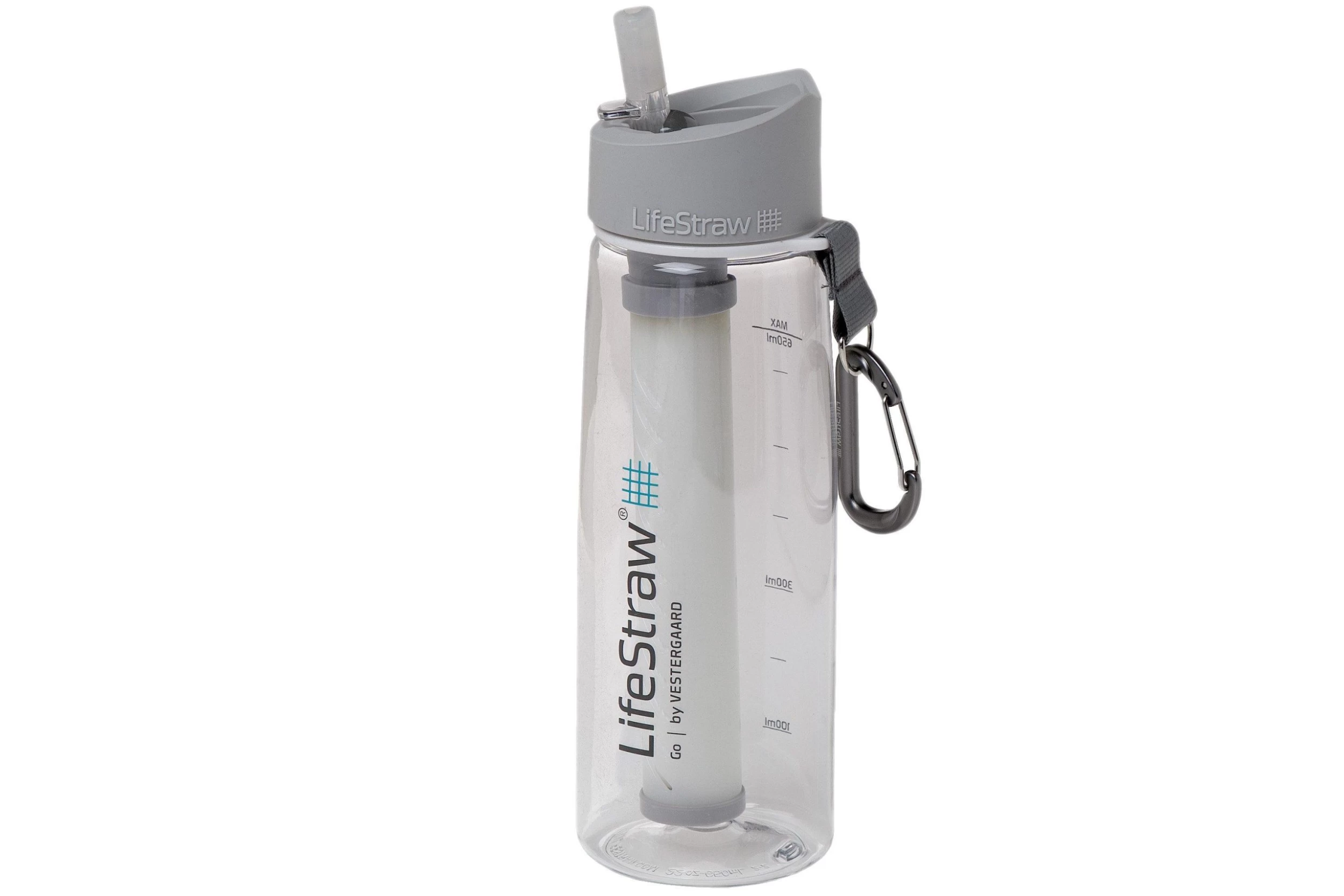 The LifeStraw Go 2-stage water bottle with filter is a very practical bottle. You can use the carabiner to hang the bottle from your backpack or belt loop so you can always keep it handy. The best thing about this bottle is its simplicity. You can fill the bottle with dirty water and simply drink straight from the mouthpiece. The dirt stays behind in the filter and only clean water comes out of the mouthpiece.