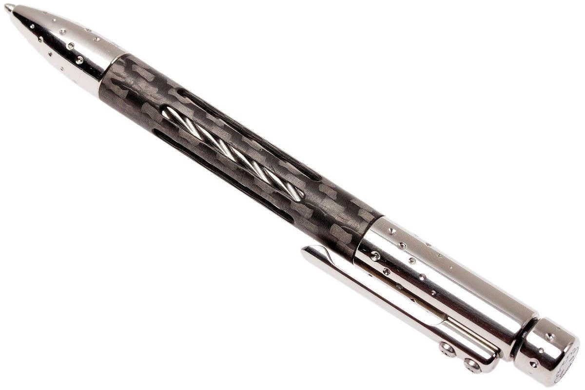 The LionSteel Nyala is a very exclusive titanium pen, designed by Tommaso Rumici. Made from only the best materials and with the use of the best techniques. This is a pen that is meant to be seen. The sleeve around the middle of the pen is unique. It is made from carbon fibre. The twisted profile on the titanium core and the cut-outs in the sleeve make the Nyala look very challenging. When you turn the sleeve around the core this is visually pleasing.