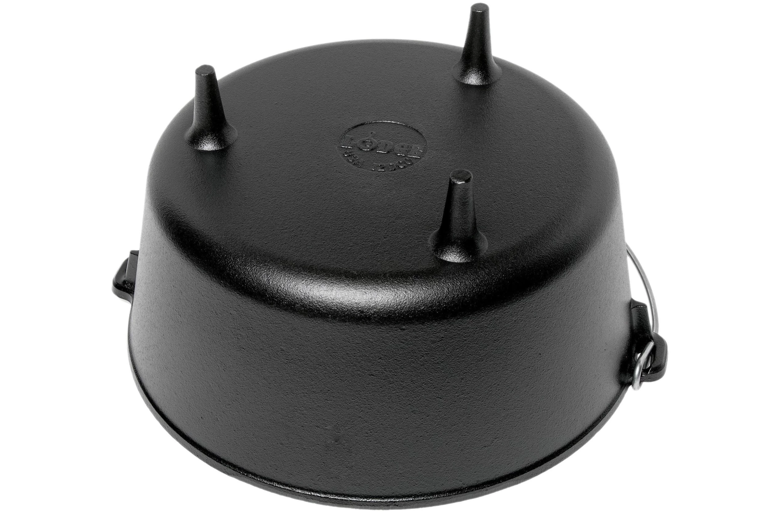 This Lodge Dutch Oven (shallow) with lid can do it all. Use it on the stove, in the oven, or over an open flame. You can stack hot coals on top of the lid, or turn the lid over and use it as a baking dish. For high heat simply place the pan on top of hot coals. Because of the feet it will always be at the right height. Do you prefer slow cooking? If so hang the pan over an open flame using a tripod! The cast-iron retains the heat well and perfectly distributes it.