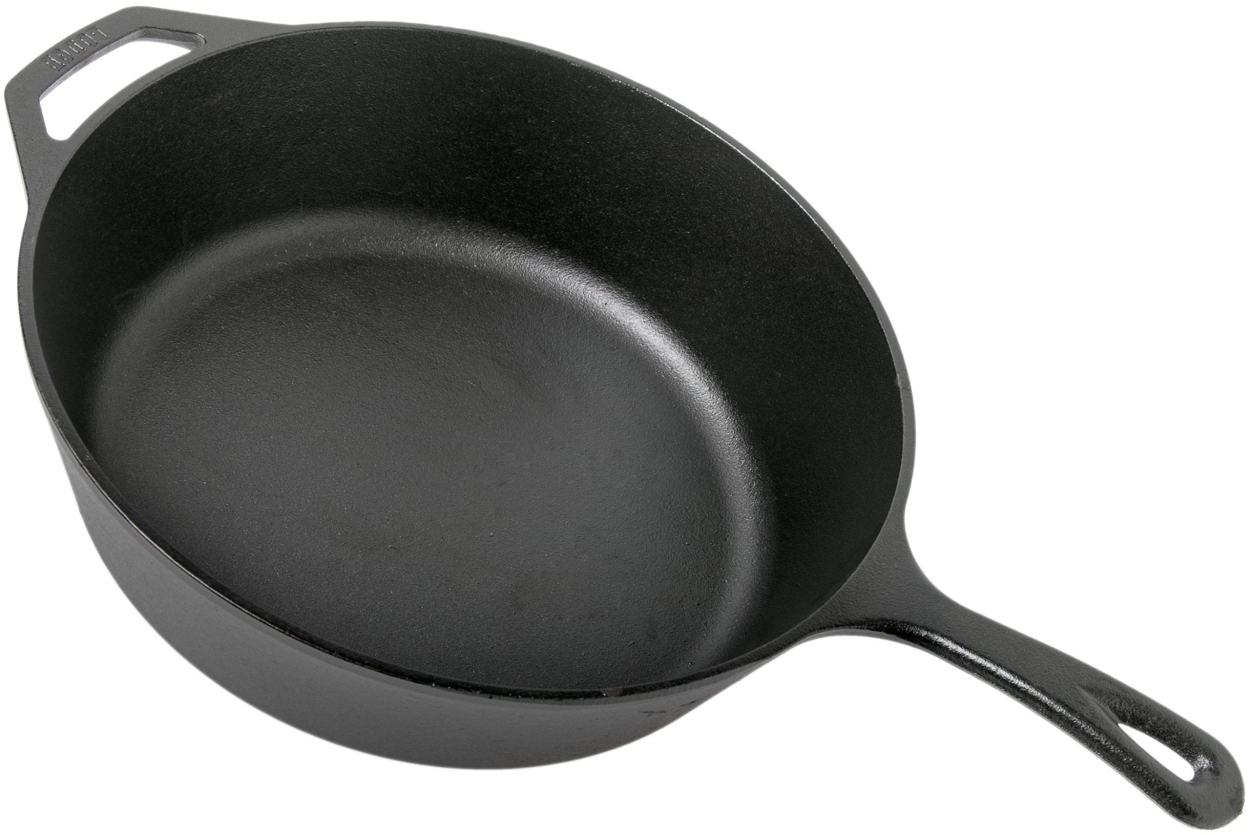 This Lodge Classic Cast Iron deep frying pan has the classic look and feel of a cast iron frying pan, but is slightly deeper. Great when baking, frying, stewing or grilling. The cast-iron retains the heat well and perfectly distributes it. No strange spots in the pan where your food won’t heat up! And the frying pan can be used on all cooking hobs. Put it in the oven, or your stove, or hang it over an open flame. It even works on induction. This pan is enhanced with an, easy to hold, handle and a flat handle to make sure you can easily lift the pan. These handles will heat up, so always make sure you take hold of the pan with an oven mitt or silicone pan holder.