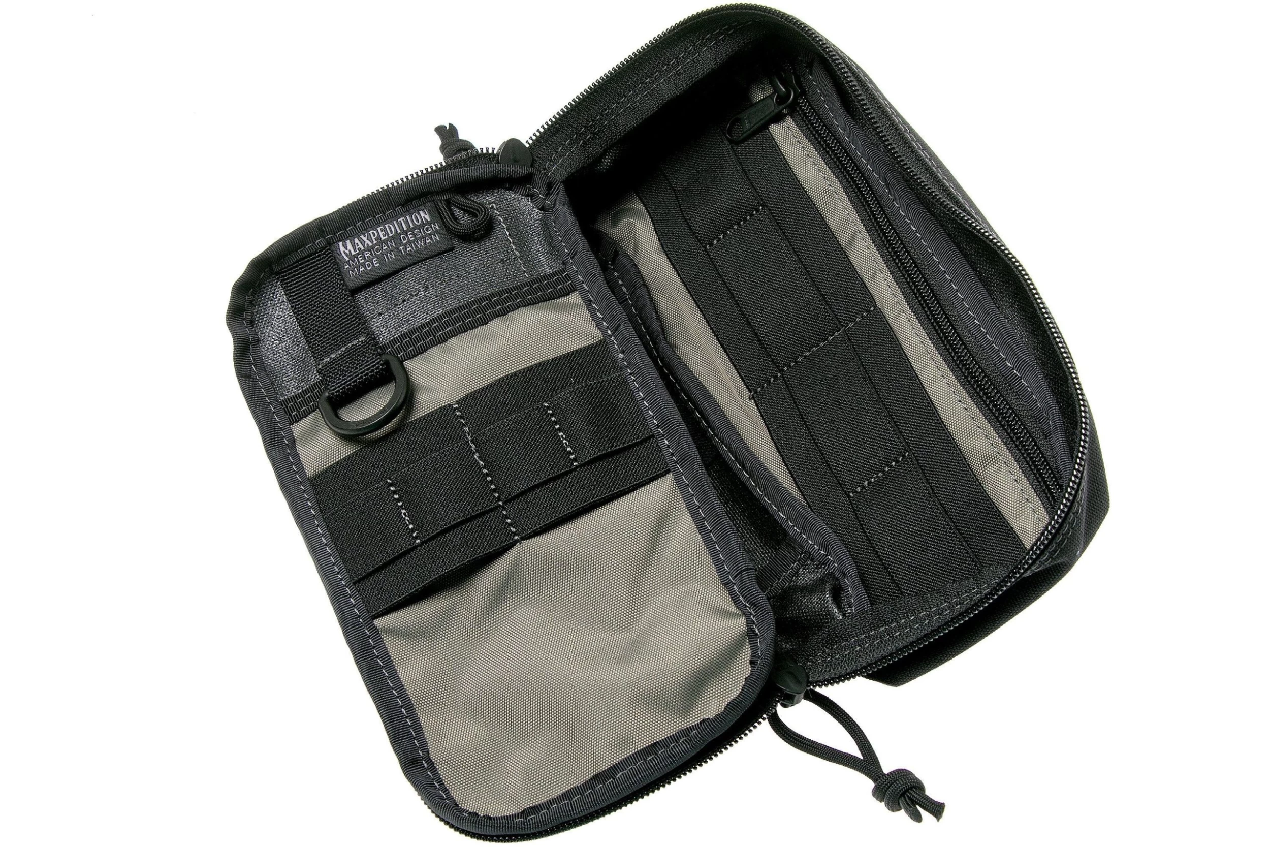 The black Maxpedition Skinny Pocket Organizer Pouch offers you room to organize your daily gear and is easy take with you. You can individually carry this pouch or attach it to your Maxpedition bag because the pouch is MOLLE compatible. The large front compartment with velcro mount and the large carrier strap are characterizing for this pouch. The front also has a part with velcro on which you can attach patches.