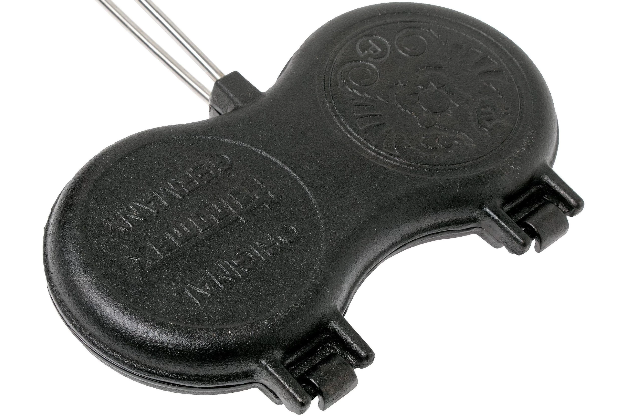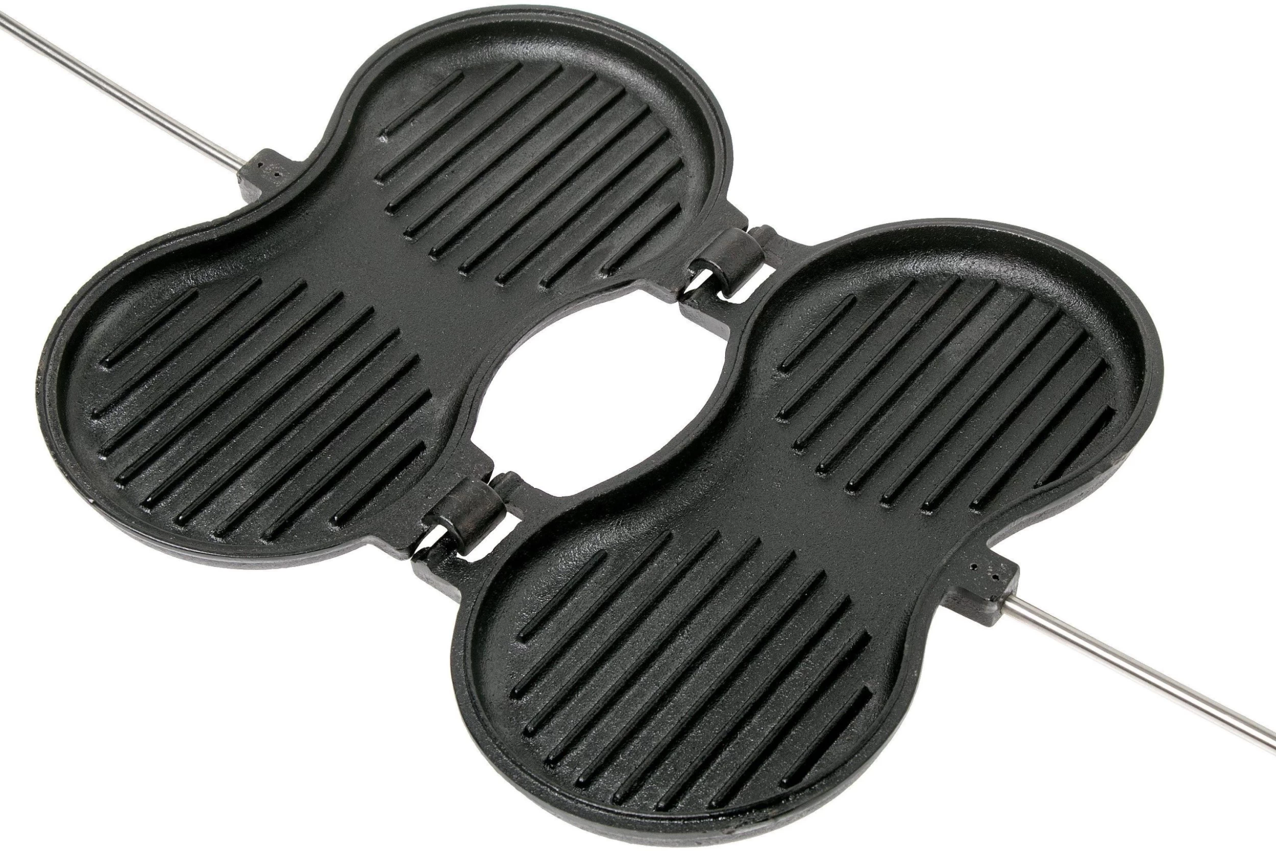 With this Petromax burger iron you can prepare the most delicious burgers over an open flame. Wonderful as a snack around the campfire or on a bun as BBQ menu. You prepare the burgers in the cast-iron pans and place them over the fire. The pans can be separated thanks to the hinge. The wooden handles feel great in hand and the long stem will provide you with enough distance to the heat source. The cast-iron can immediately be used and doesn’t need to be seasoned.