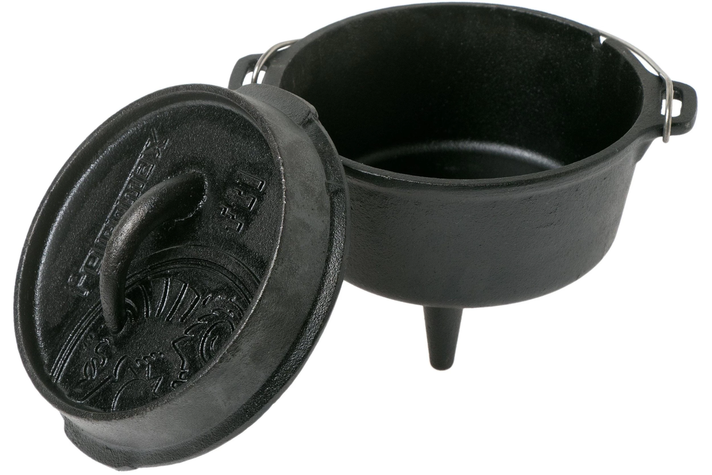 This original 0.93 Litres Petromax Dutch Oven ft1 is perfect for outdoor use, on the BBQ or in the oven. Because of the wonderful qualities of cast-iron the heat is evenly distributed and retained. Outside you can use the pan over an open flame with charcoal or briquettes. The raised edge on the lid makes it possible to add charcoal or briquettes on top of the Dutch Oven. As a result the pan is heated from all sides and will function as an oven. You can also hang the pan over an open flame or use it in the oven.