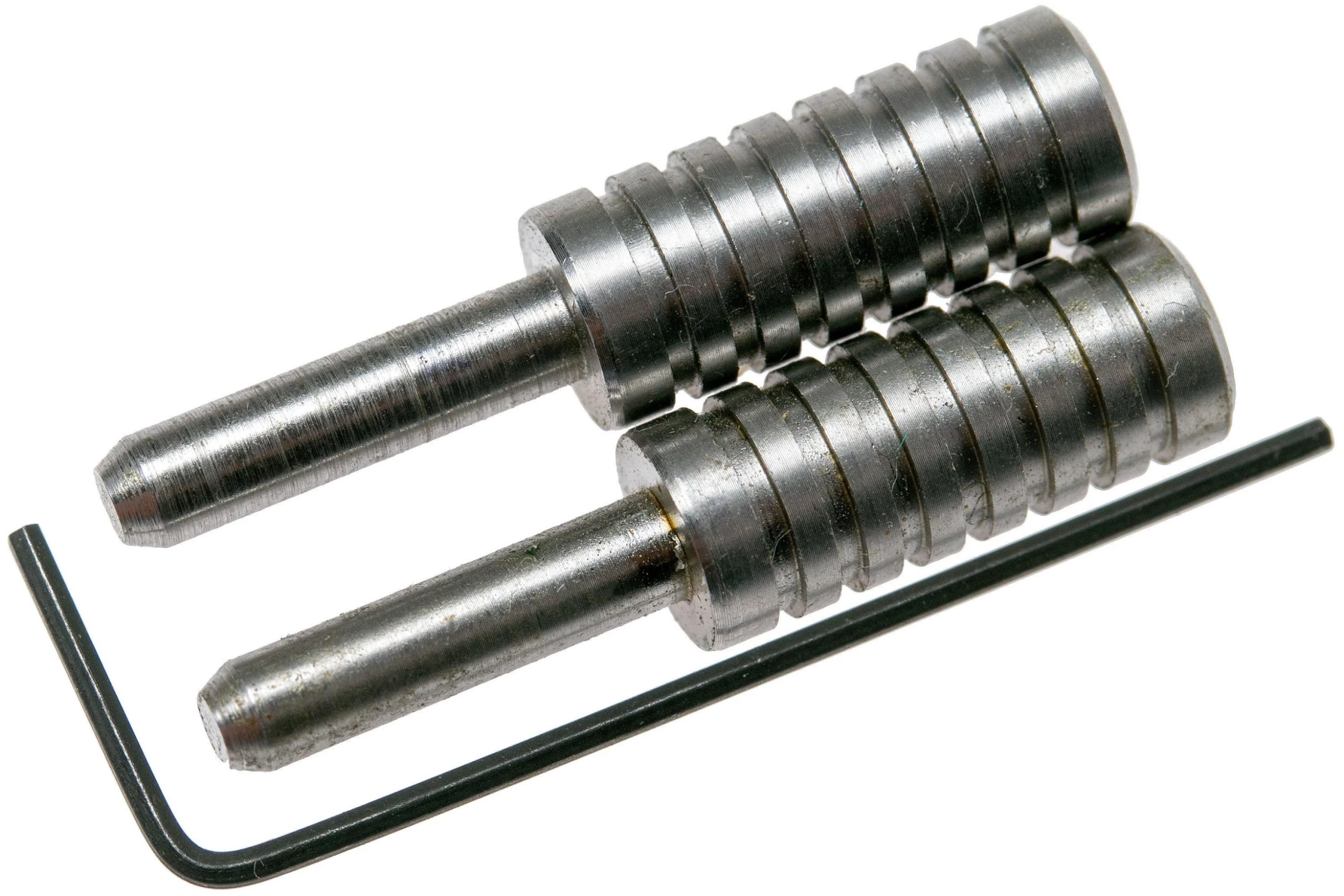 The Rick Hinderer Extreme Duty Modular Kubotan Pen Deluxe Set is a large tactical pen, designed by knife maker Rick Hinderer. With a total length of 15.6 cm and a diameter of 12.3 mm this is quite a big boy. Hinderer selected a Fisher Space pen refill size U4F as the refill. So a little smaller than the normal refill. It is necessary for the modular character of this Modular Kubotan. You can namely also only use it as a Kubotan, without the pen part. You also receive two different additional caps for the other end. As such you can configure it the way you like. To change it you can use the included pins to easily loosen and secure them. You also receive an Allen key to change the refill.