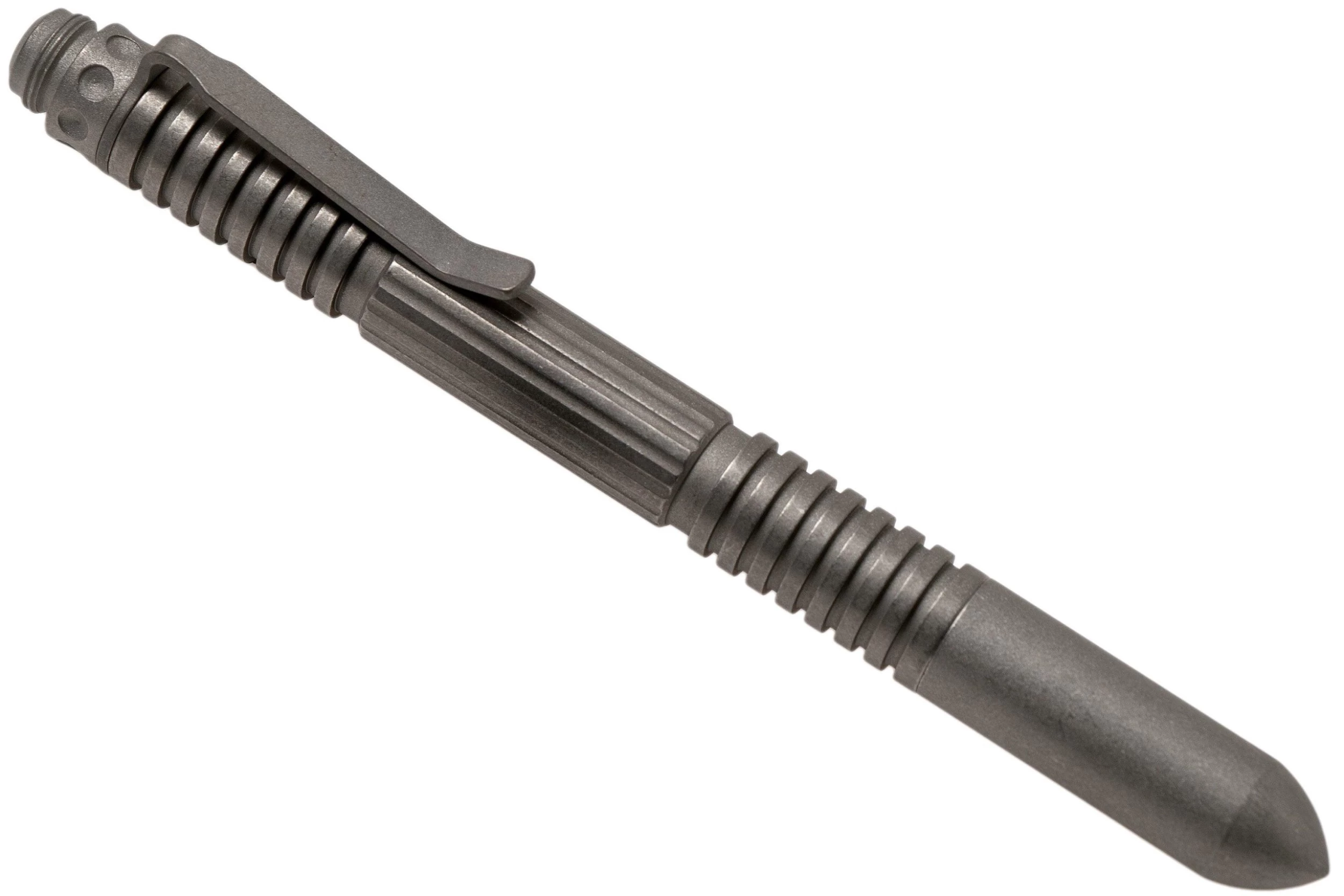 The Rick Hinderer Extreme Duty Pen is a slim tactical pen, designed by knife maker Rick Hinderer. With a total length of 14.1 cm and a diameter of 12.3 mm this is quite a big boy. Hinderer selected a Fisher Space pen refill as the refill.