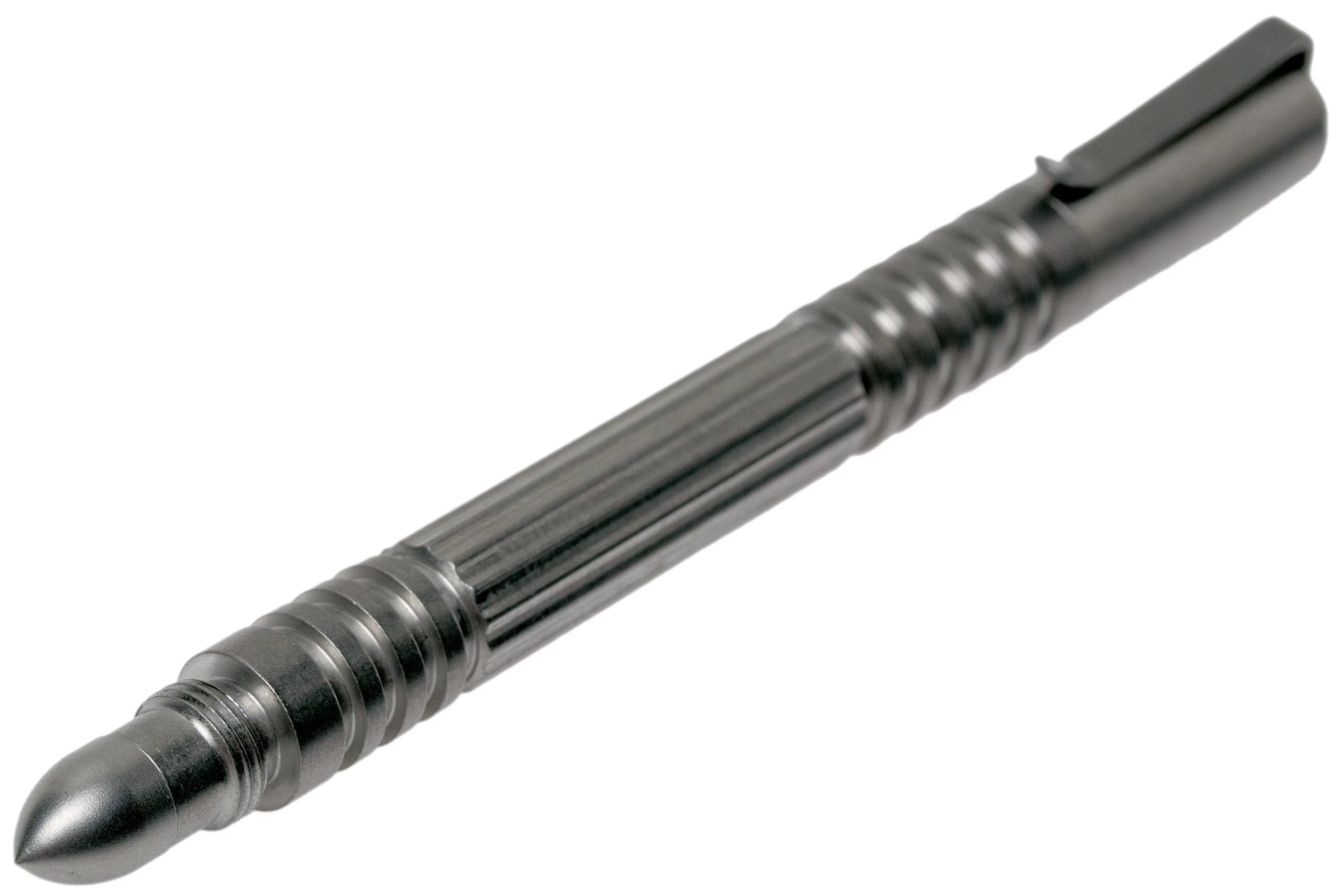 The Rick Hinderer Investigator Pen is a slim tactical pen, designed by knife maker Rick Hinderer. With a total length of only 11.1 cm and a diameter of 9.4 mm this pen won’t stand out in your chest pocket. The subtle pocket clip will keep the pen in place, without being noticed. Hinderer selected a Fisher Space pen refill as the refill.