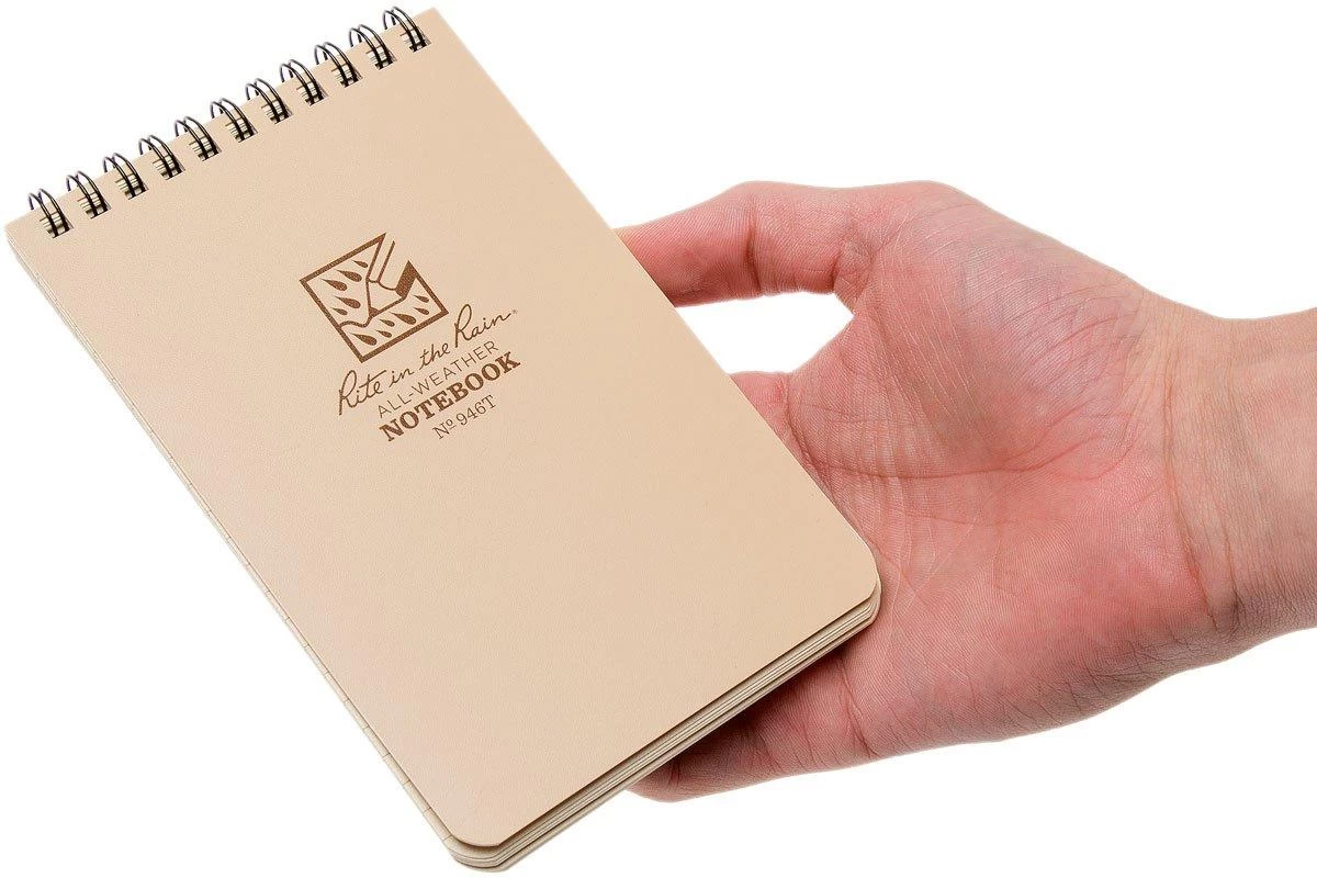 The brown Rite in the Rain notebook 4″x6″ is great for making notes regardless of the weather. The paper is nearly indestructible and practically doesn’t age. Unlike synthetically or polyester coated paper you can recycle this type of paper. Great to be used underwater, outside when it is wet or in humid surroundings such as swimming pools and greenhouses. Use a pencil or all-weather pen and you will never lose your notes again!