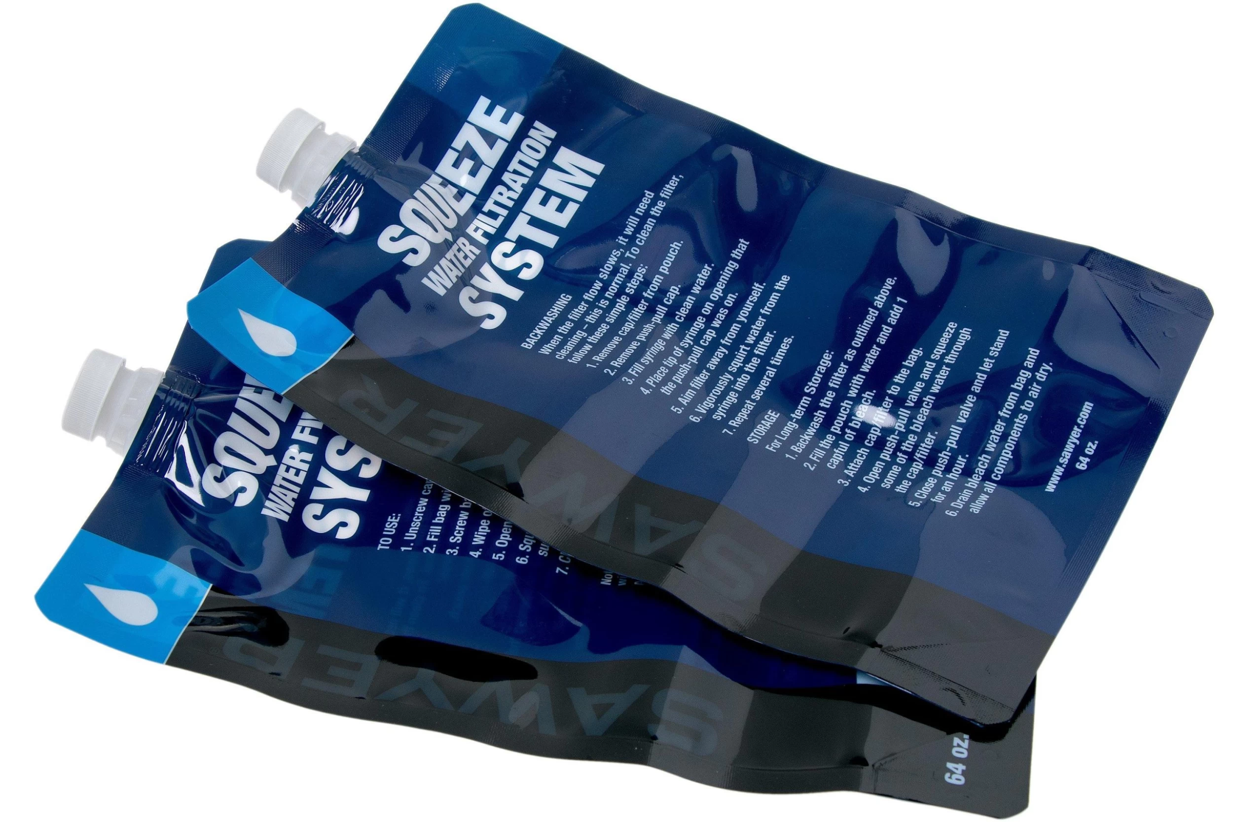 This Sawyer Pouch 2L set of 2 consists of 2 squeezable hydration packs that can be screwed onto your Sawyer Micro Squeeze, Squeeze or Mini water filter. They can be used to replace your old hydration pack, or as an addition. The pouches have a capacity of roughly 2L each.