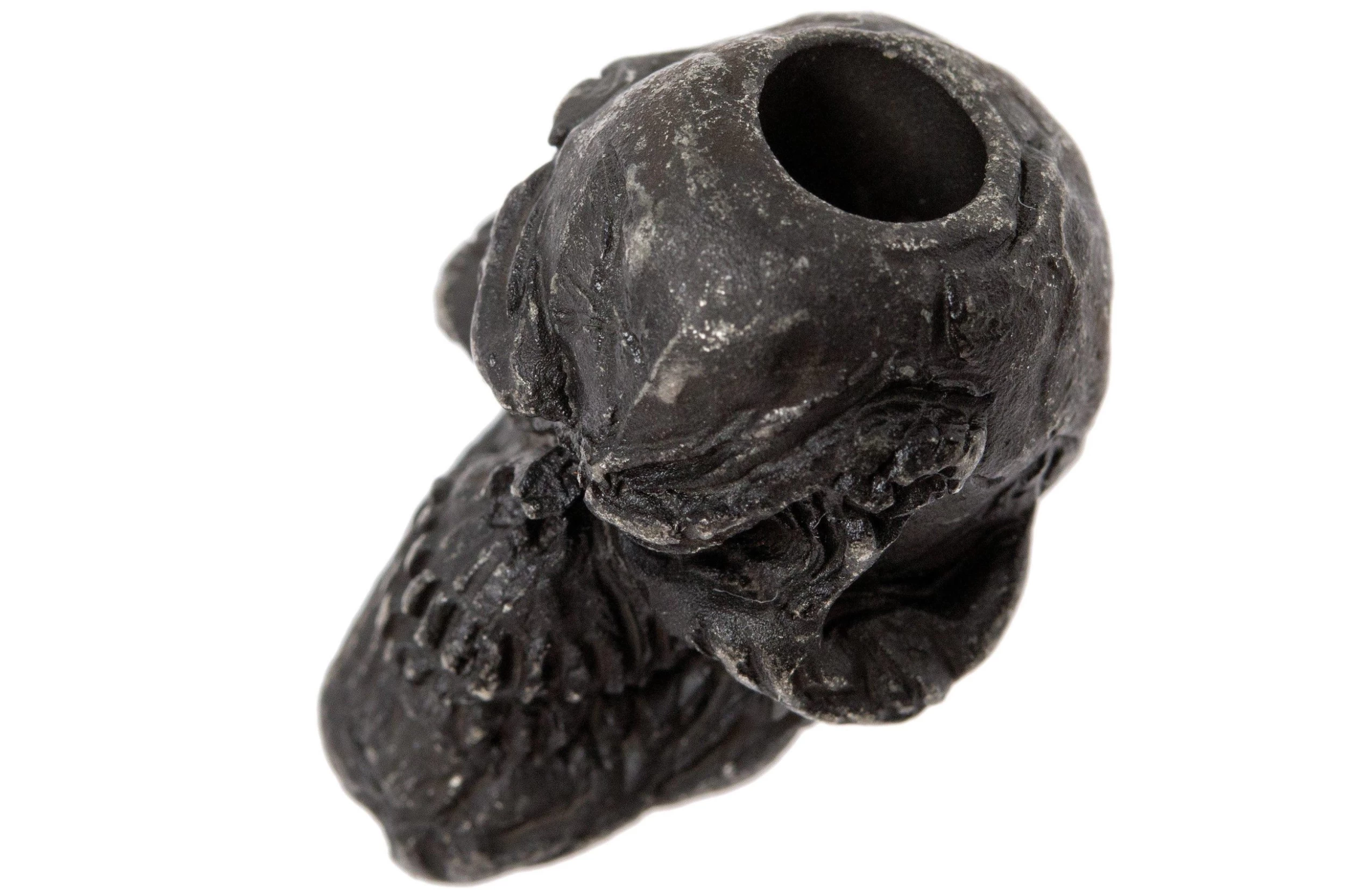 The Schmuckatelli Grins Skull Bead Black Oxidized is a cool bead. This bead has an oxidized finish. This creates a beautiful matt look. The inner size is approximately 5 mm. Perfect for paracord 550. It has room for two strands of paracord.
