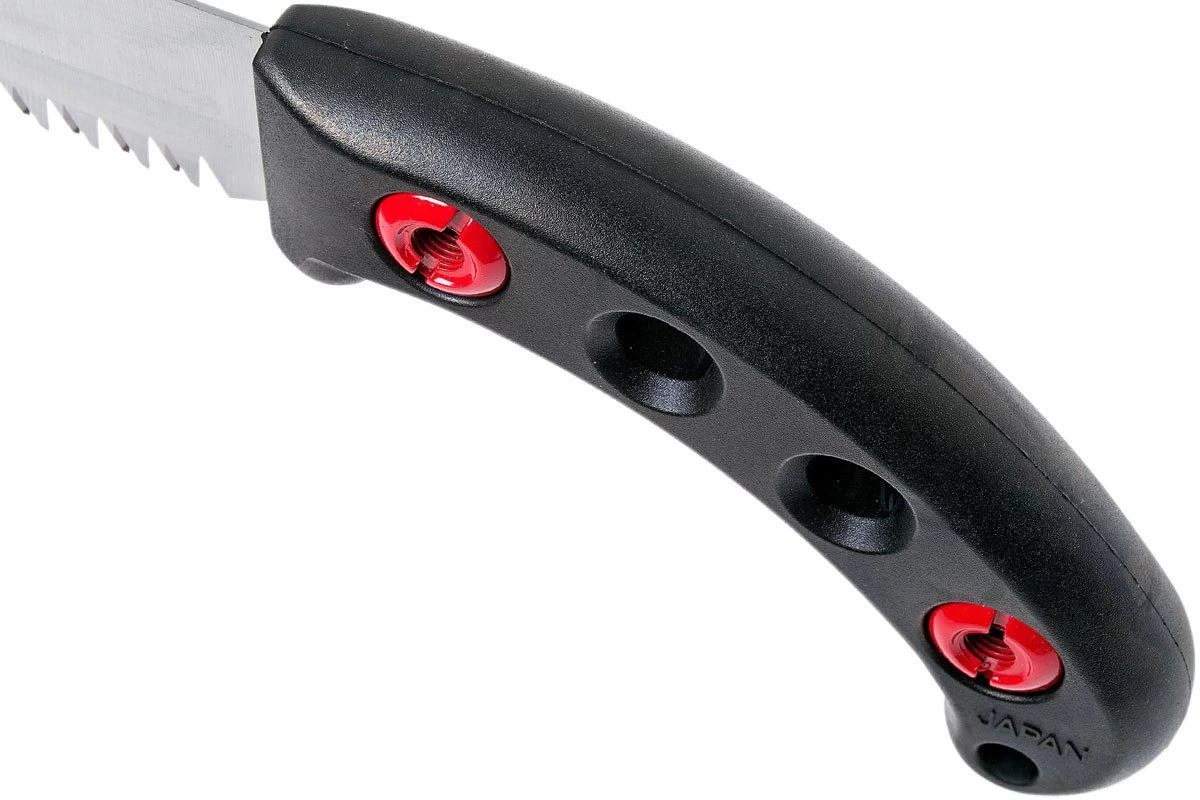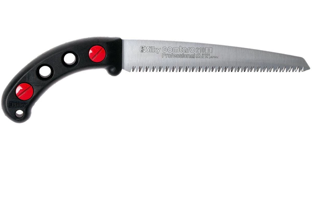 The Silky Gomtaro is a practical, fixed pruning saw. You use it to prune trees and shrubs. Because it has a fixed blade you don’t have to worry about it closing when you don’t want it to. In addition, when you have a fixed Silky blade you can perfectly align the shape and the ratio between the handle and the blade. Some believe that that is why the Gomtaro is even better to work with.