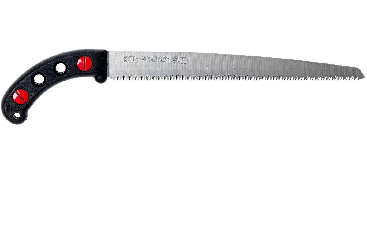 The Silky Gomtaro is a practical, fixed pruning saw. You use it to prune trees and shrubs. Because it has a fixed blade you don’t have to worry about it closing when you don’t want it to. In addition, when you have a fixed Silky blade you can perfectly align the shape and the ratio between the handle and the blade. Some believe that that is why the Gomtaro is even better to work with.