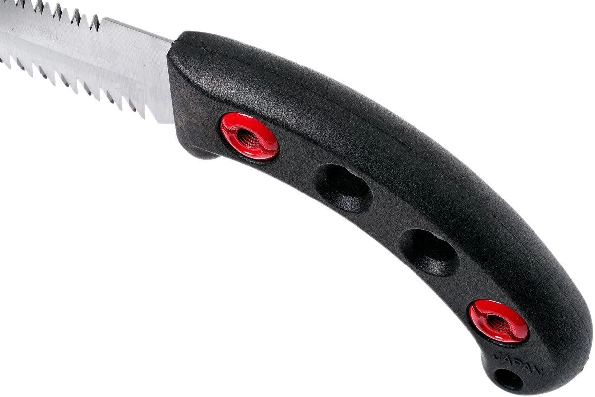 The Silky Gomtaro Nidangiri is a practical fixed pruning saw. You use it to prune trees and shrubs. Because it has a fixed blade you don’t have to worry about it closing when you don’t want it to. In addition, when you have a fixed Silky blade you can perfectly align the shape and the ratio between the handle and the blade. Some believe that that is why the Gomtaro is even better to work with.