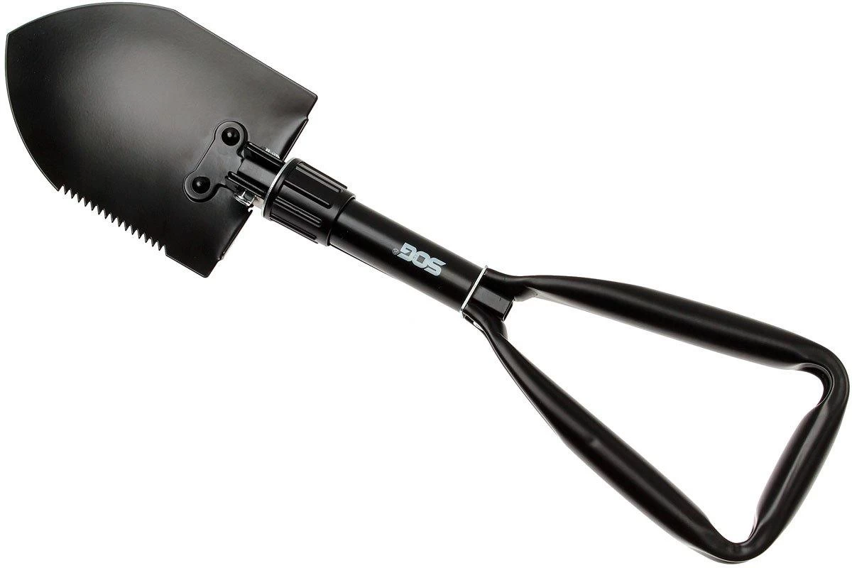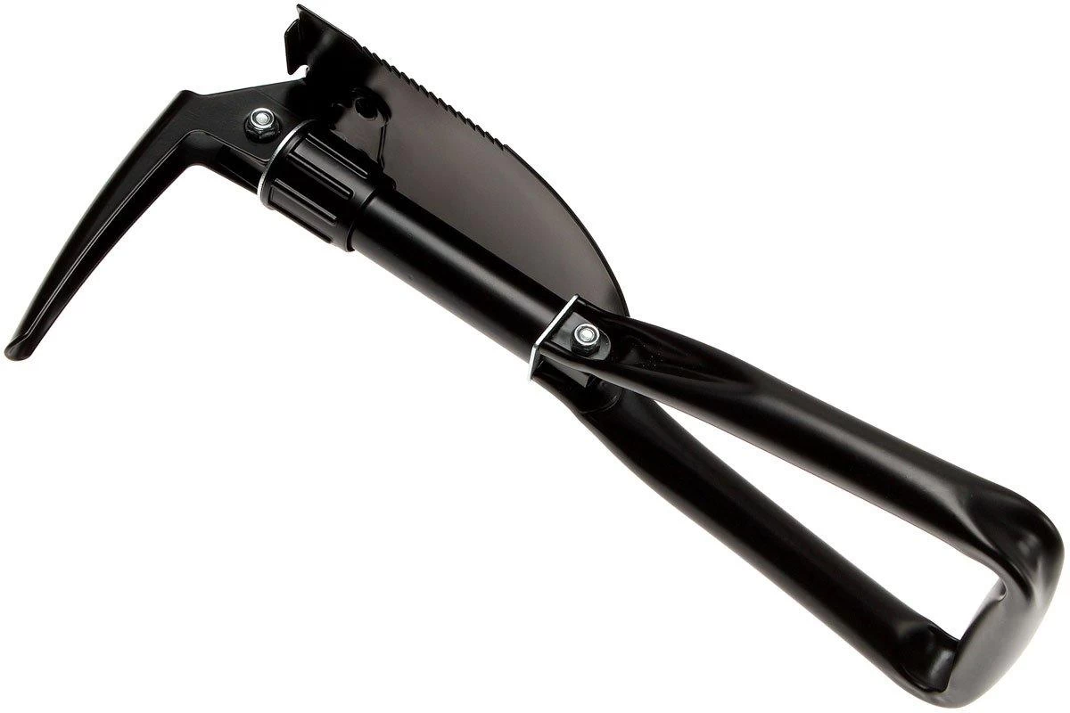 The SOG Entrenching Tool F08-N is a versatile and compact folding shovel. The Entrenching tool can be used as a shovel and pickaxe. The tool has a length of only 18.5 cm when folded. Ideal to carry with you on your camping- or survival trip. The triangle handle offers a firm grip. It is completely made from carbon steel. This steel, however, is not corrosion-resistant. Fortunately, the material is enhanced with a black coating, so maintenance is limited.