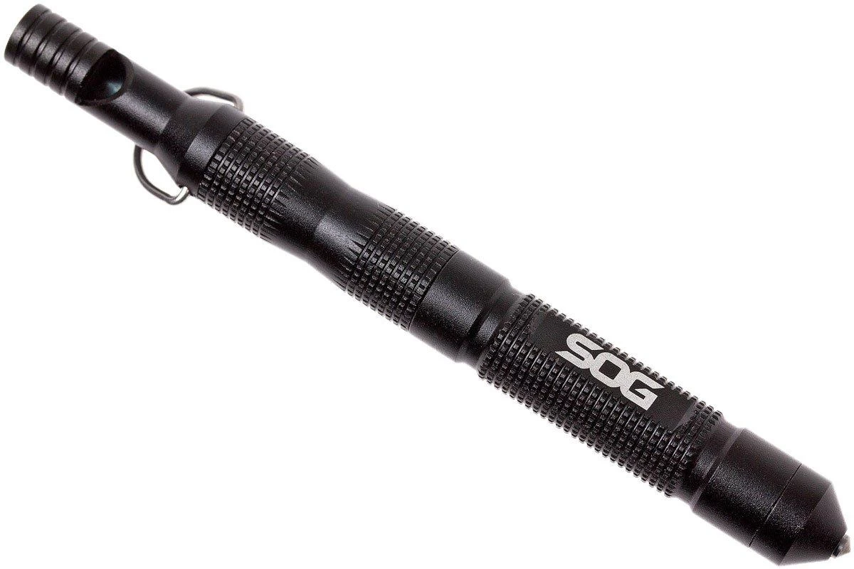 emergency whistle, glass breaker, key ring, scraper, tinder