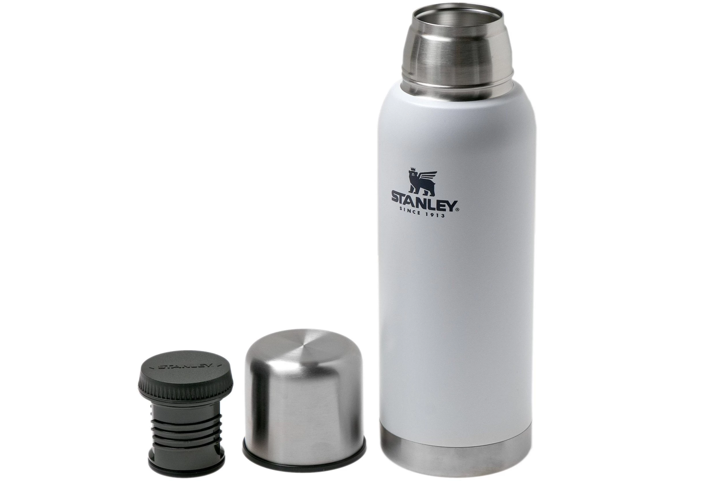 The Stainley Stainless Steel Vacuum Bottle is a solid thermos with a content of 1 litre. The bottle is insulated with a vacuum between the walls to make sure no heat is lost. The cap is comprised of two parts. The outer cap also serves as a cup. And the inside cup nicely seals off the bottle. You don’t have to remove this cup to pour a beverage. The cap is namely enhanced with a small cut-out, to make sure you only have to turn it a little to pour your drink. Perfect!