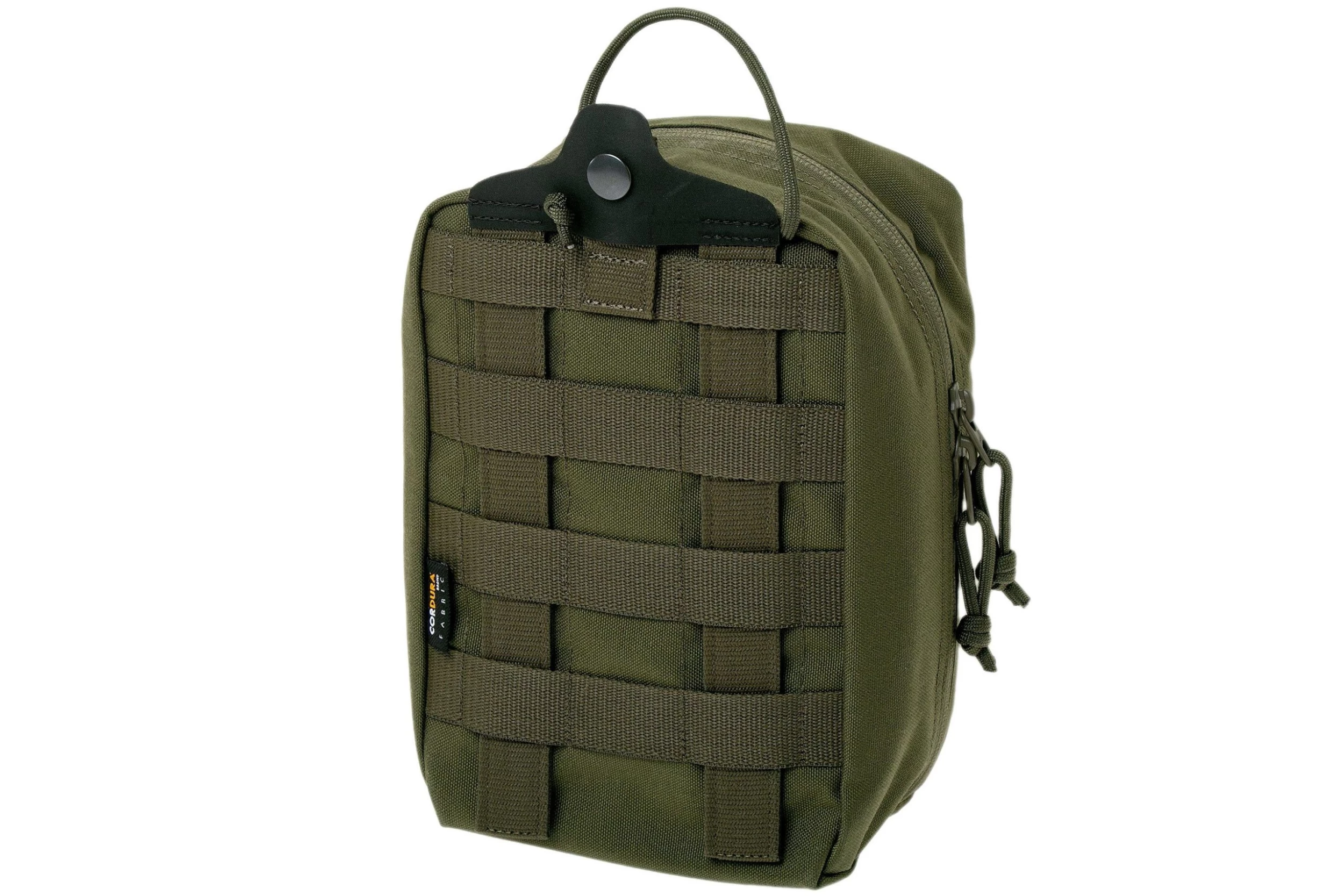 Use the Tasmanian tiger Base Medic Pouch MKII during emergency situations. The back contains a solid MOLLE system to make sure you can easily attach the Medic Pouch on your backpack. Above this system you will find a black mount with press stud. During emergency situations you can quickly loosen the button by pulling the pouch once. By sliding the MOLLE into the Medic Pouch you can attach it on your backpack again when you no longer need it. You can immediately tell that this pouch was designed for situations when every second counts.