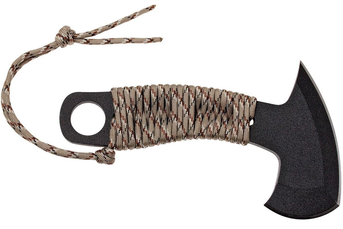 The TOPS Micro Hawk is an interesting little axe. It is suitable for regular chopping and for splitting small pieces of wood while camping. It can also be used for throwing. The entire front and top of the axe head are sharpened. This provides a total cutting edge of 14 centimetres and a sharp point on the back. The TOPS Micro Hawk can therefore be used for many different tasks.